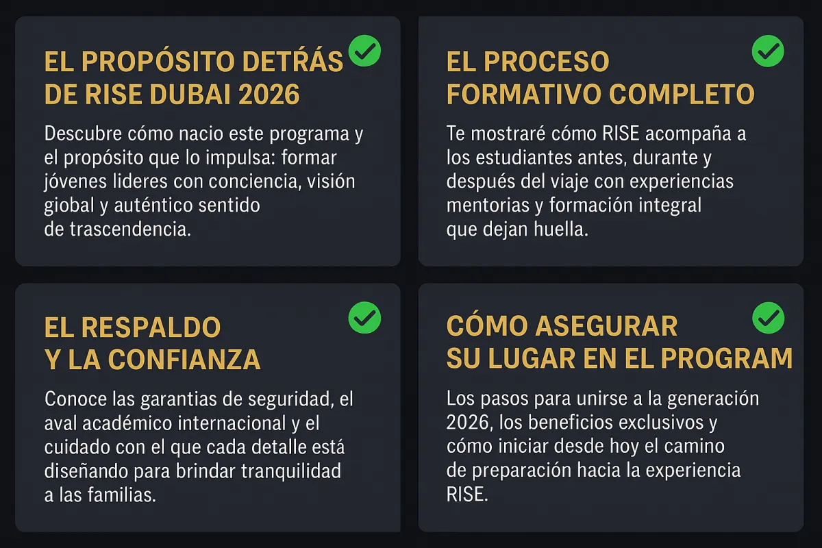 Esta conversación está diseñada para ayudarte a entender por qué RISE DUBAI 2026 no es solo un viaje, sino un proceso que puede marcar un antes y un después en la vida de tu hijo.